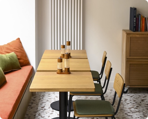 Niché près du bureau mais loin du tumulte parisien, notre restaurant offre une véritable pause gourmande : service du midi, ateliers culinaires pour les entreprises et privatisations. Un lieu pensé pour savourer et se retrouver.